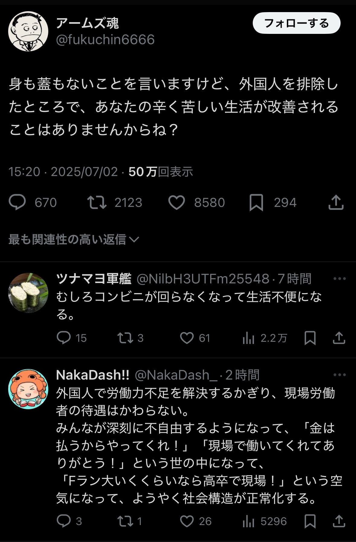 むしろ外国人を排除したら日本の社会保障やインフラが立ち行かなくなる