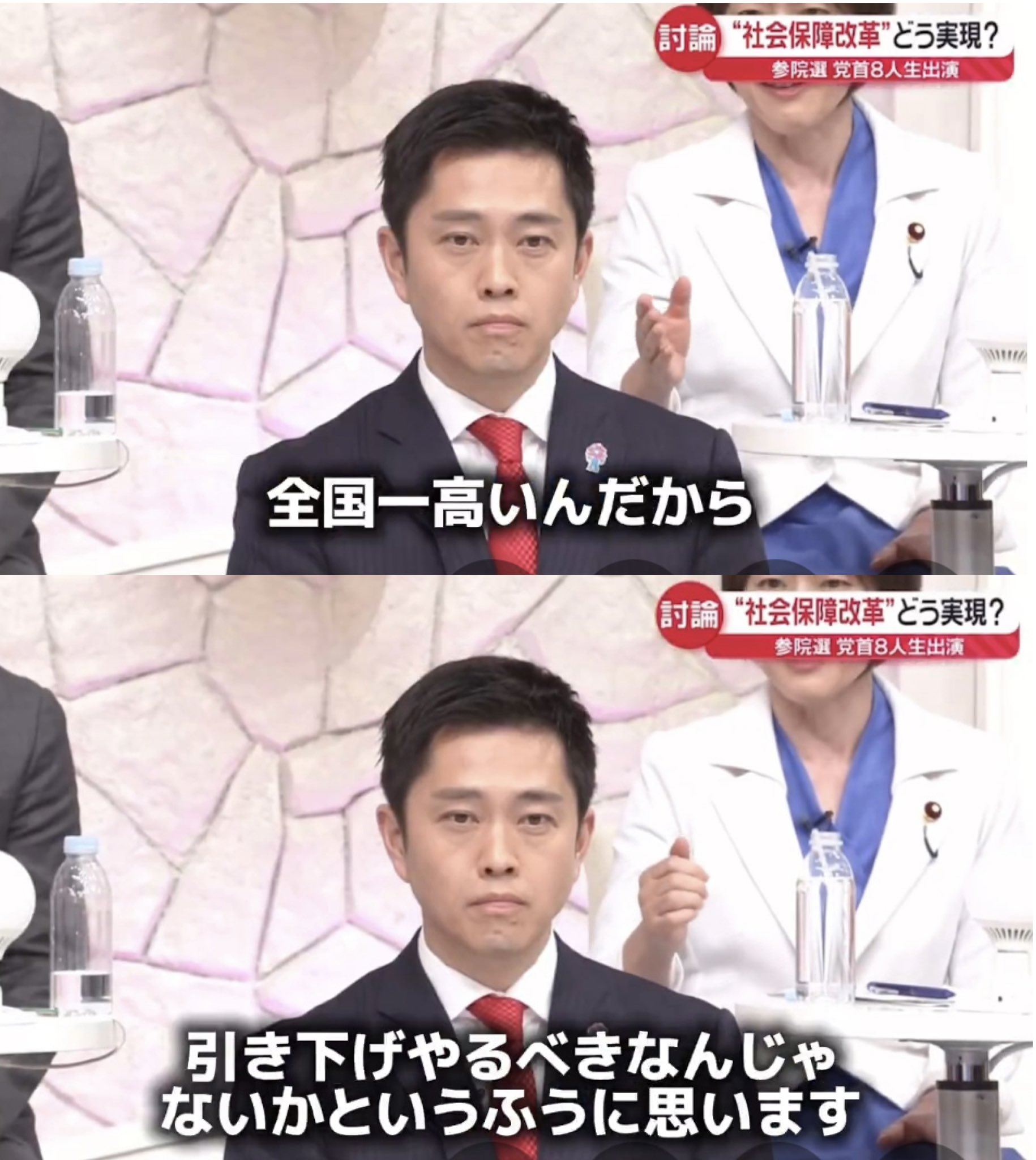 そして社会保険料の中で「一番高いのは国民健康保険」とし、吉村代表の発言について「吉村さん、そう言われるなら大阪府でまず国民健康保険、