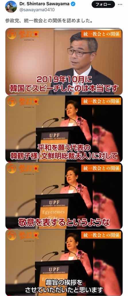 愛国政党参政党、統一教会との関係を認めるwwwww