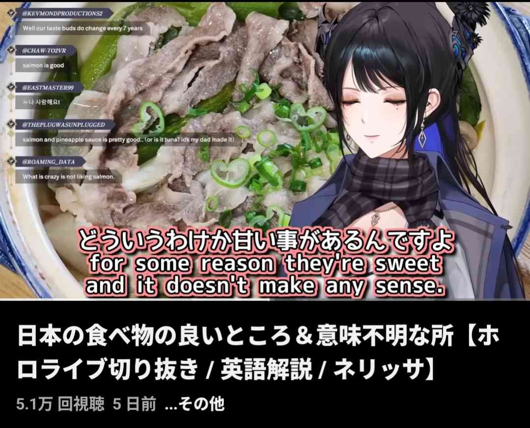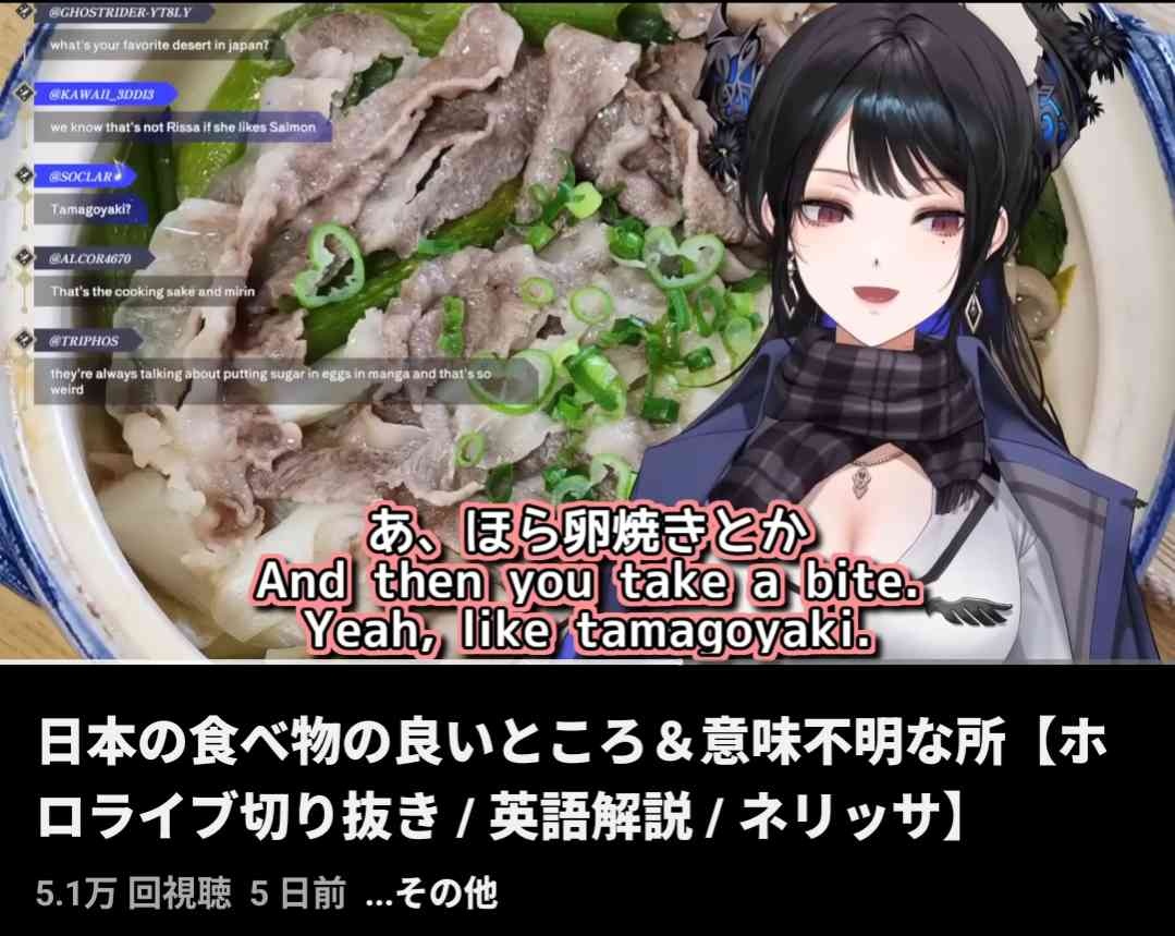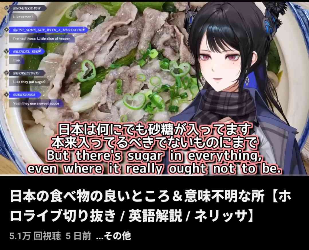 ホロライブの海外Vtuber「日本の食べ物は甘いものが多すぎ。何にでも砂糖入れるから。卵焼きとかね。」ネトウヨブチギレwww