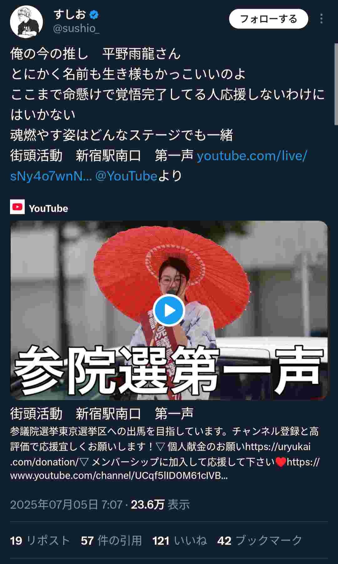 それとも右とか左とかなんの考えもなく本当にただただ個人的に平野って人のファンにだっただけなのか