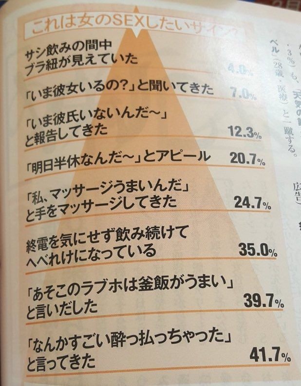 逆に考えると60%くらいの女は別にヤるつもりなくても唐突にラブホの釜飯の話始めるんか