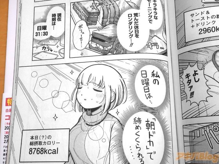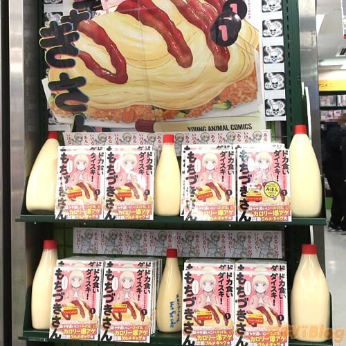 今回発売になった「ドカ食いダイスキ!もちづきさん」1巻【AA】には、第1話~第6話と描き下ろし漫画を収録(目次)し、アキバのお店では、ゲーマーズにあらすじPOPや、メロン1号店の特設コーナーでマヨネーズと並べて展開していて、オビ謳い文句は『X(Twitter)日本トレンド1位入り!次にくるマンガ大賞2024・8位&冷凍食品はニチレイ賞W受賞!』で、裏表紙は『カロリーのオーバードーズで“至る”限界突破の禁断グルメ・ギャグ★』だった。