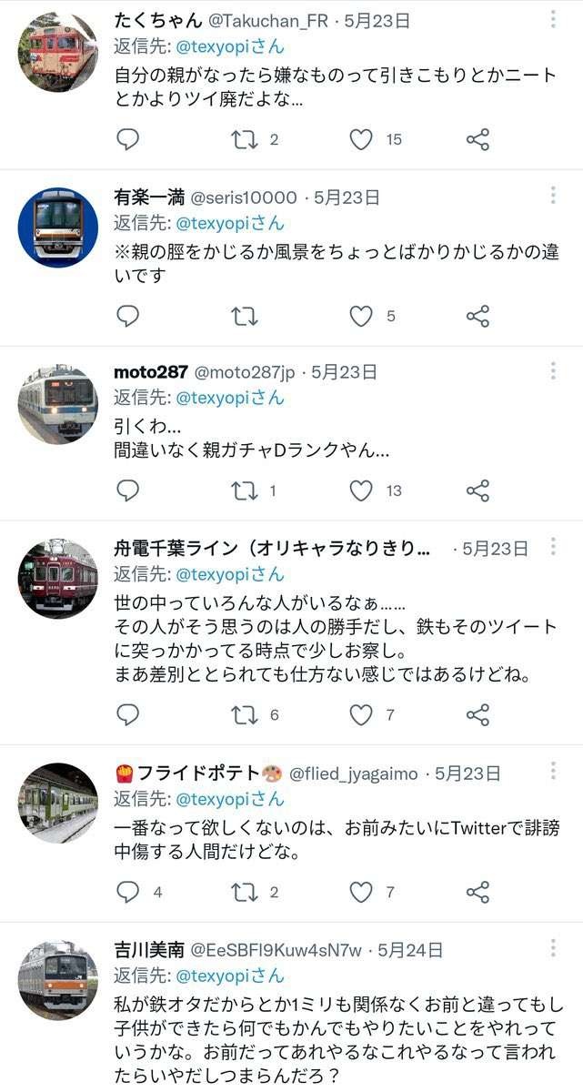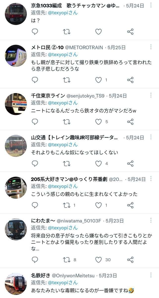 全員がそうじゃないとは思うけど電車撮るためにめっちゃ迷惑かけてるニュースとか見てると、撮り鉄になってほしくないてかああやって自分のことしか考えられず周りに迷惑かける子にはなってほしくないと思うかな