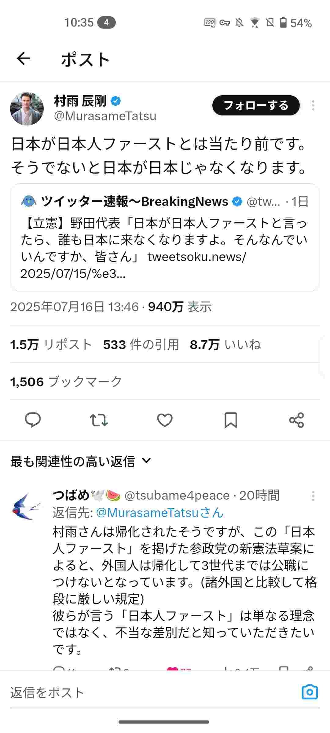 そもそもこれの意味が分からないところは今が日本人ファーストではないっていう前提だから