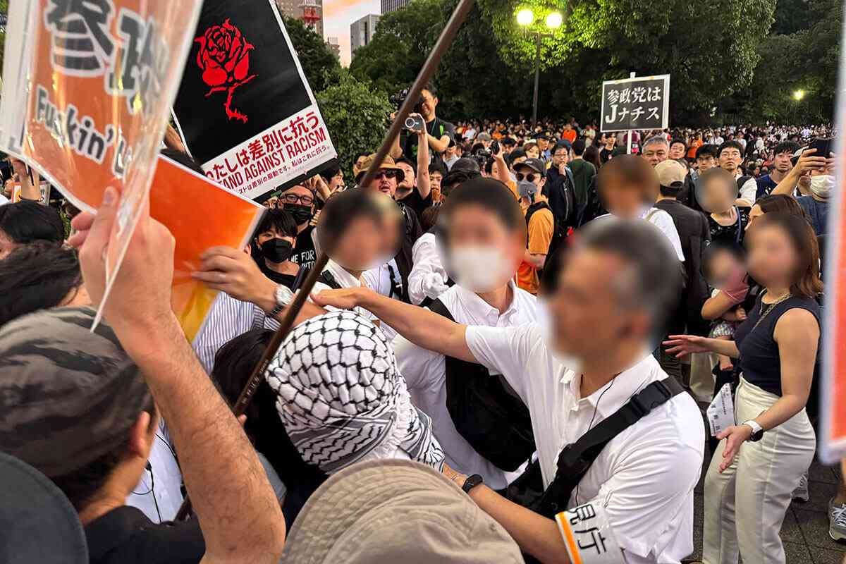 「オメー、警官なら手帳見せろよ、コスプレか?」2万人集結の参政党マイク納めは“アンチ”の乱入で大混乱 警察官の制止を聞かずあわや暴動に
