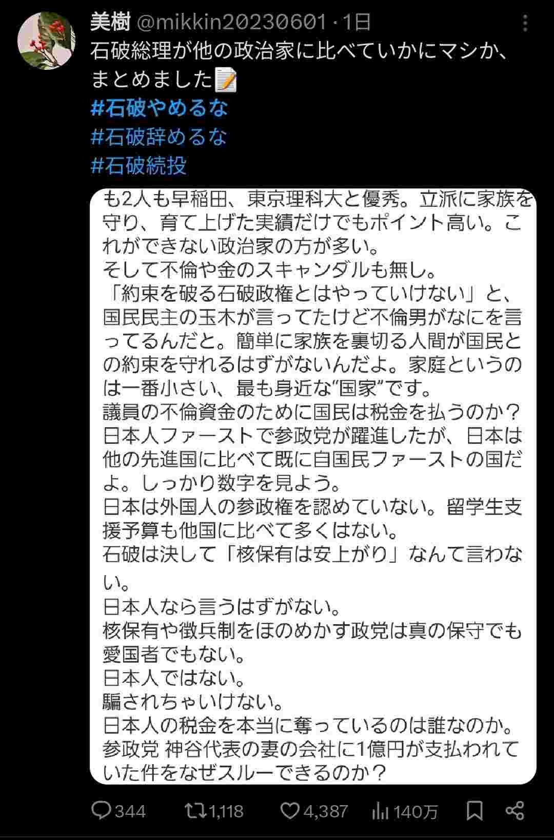 反石破を信頼できないから石破には続けてほしいと俺は思う