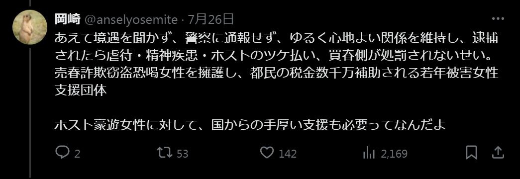 まだ呑気にホストに貢いで風俗落ちした女を助けろとか言ってるみたいだけど、それ犯罪行為だから