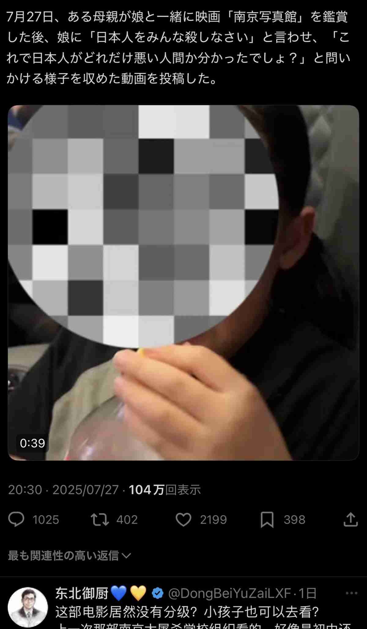 抗日ドラマはさすがに中国人からも笑われてるらしいが、731部隊とかホンの触りだけ映像化してもエグいからなー。反応として正常だよ。