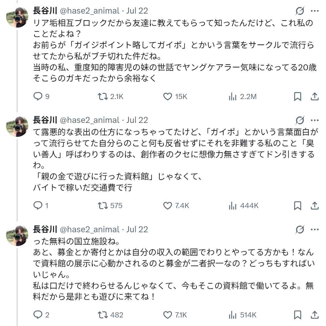 木古の同級生「お前らが『ゲェジポイント、略してガイポ』という言葉を流行らせてたから私がキレた話だよね。当時の私は障害児の妹の世話で余裕がなくて露悪的な表現になっちゃったけど、『ガイポ』という言葉を反省せずに私のことを『臭い善人』呼ばわりはドン引きするわ」