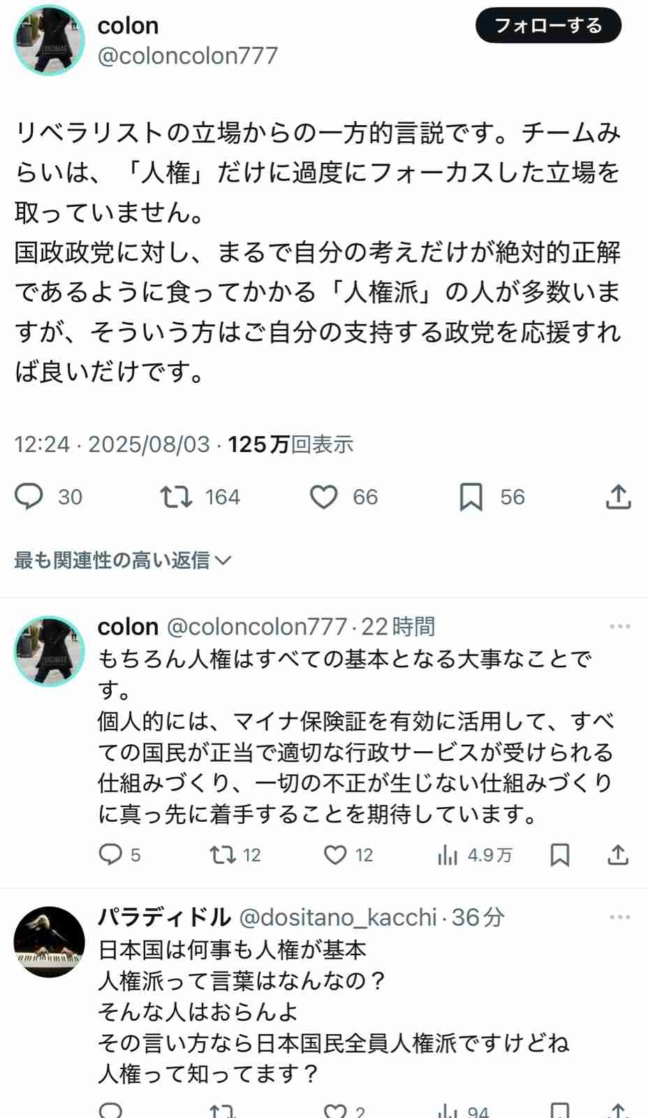 へぇ参政党支持者+みらいも基本的人権いらないのかぁ