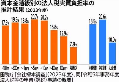 2012年の税引き前利益29・2兆円に対し法人3税は9・4兆円と、負担割合は32・2%でした。ところが、23年には税引き前利益が77・1兆円と大きく増えたのに、