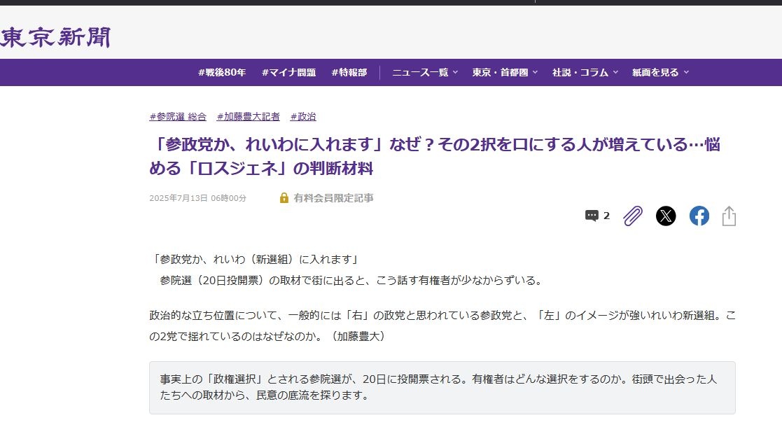 れいわ新撰組の選挙参謀は森大志、斎藤まさし(病気療養中)。