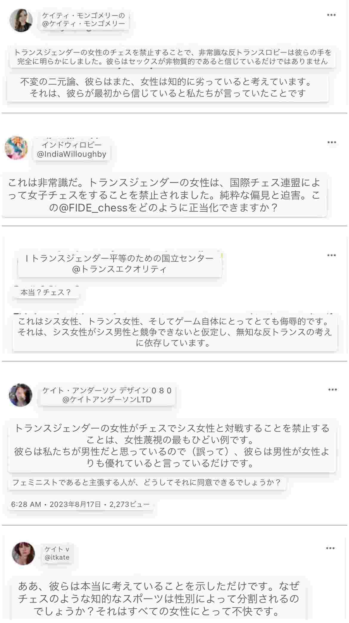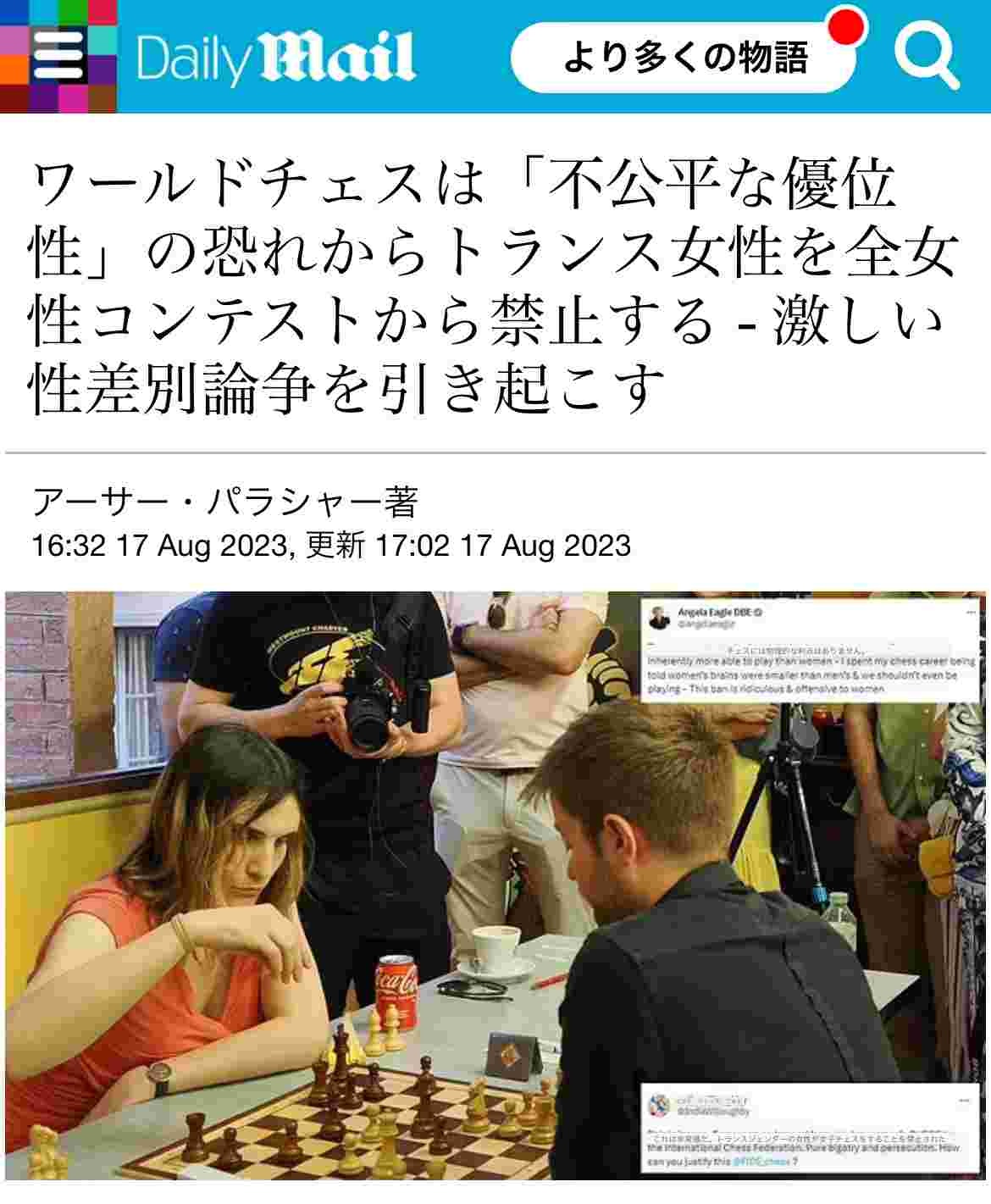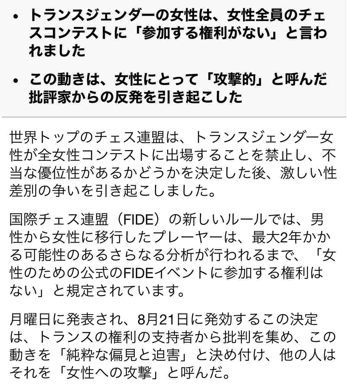 世界チェス協会「トランス女性は女性限定大会に出るの禁止な」⇒女性をバカにしてると大炎上🔥