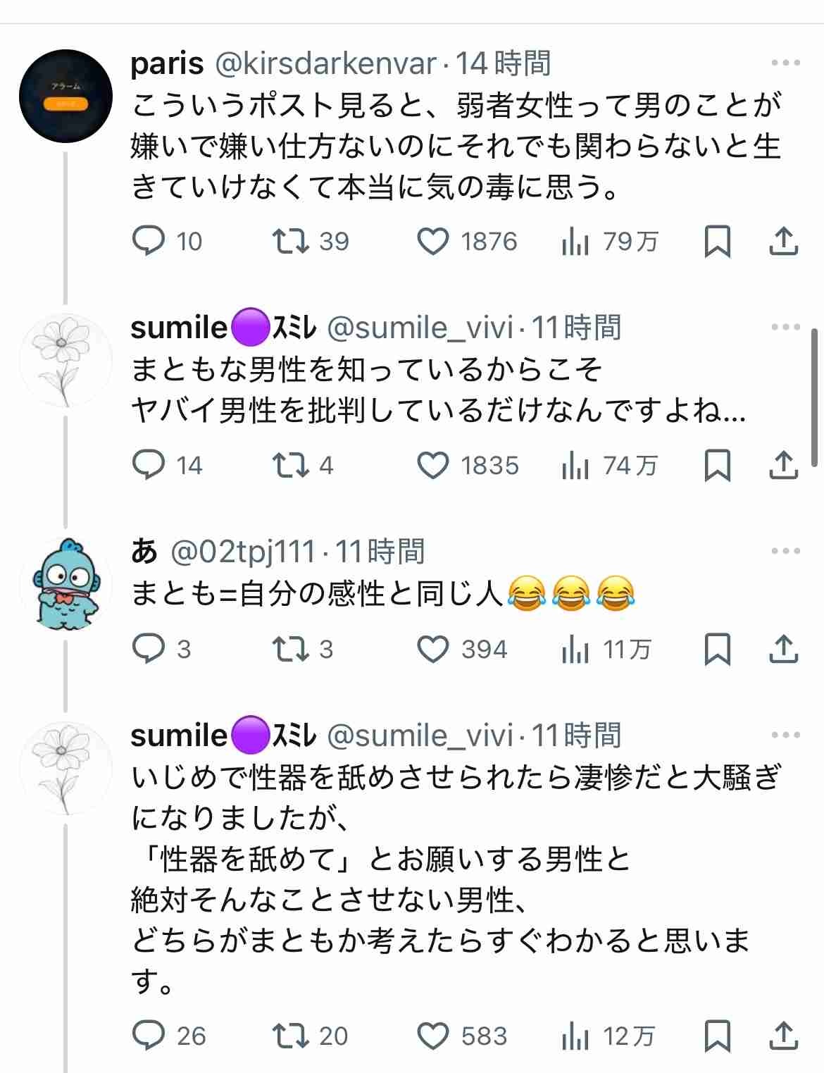 男叩きたいからって視野狭窄なりすぎでしょ弱女さん