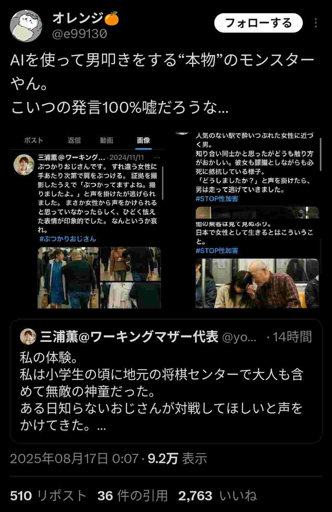 自演だろうけど政治界隈やフェミ界隈は魔境過ぎて判断が難しい
