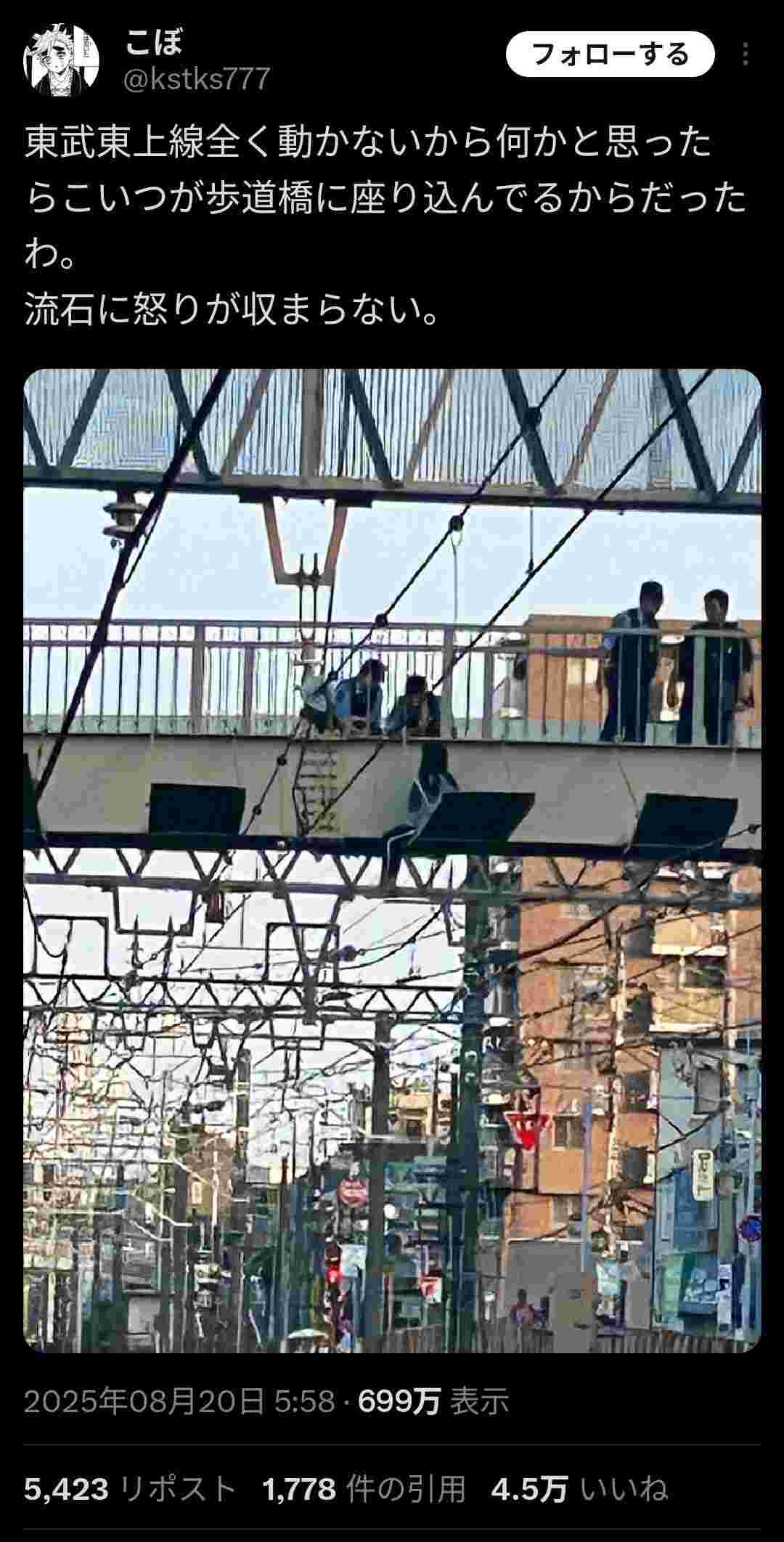 歩道橋に座り込んでたら何で電車止めなあかんの