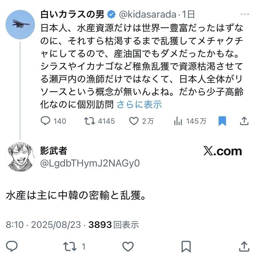 中国が輸入してる魚も加工されて日本にきてる定期