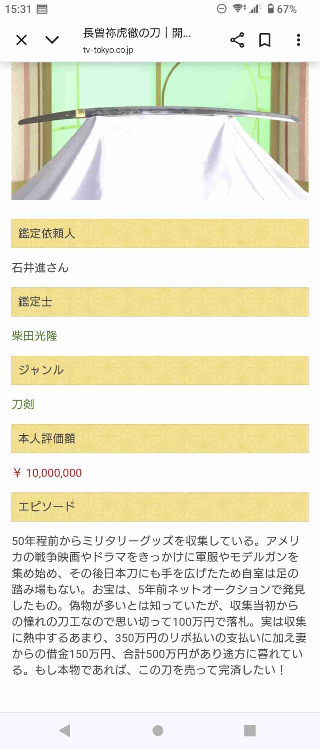 本物なら置いとけば1000万円で買って2000万円で売れるチャンスがあるレベルの刀工の刀だからな