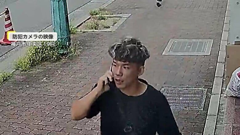 8月19日、神戸市中央区に設置された防犯カメラの映像には、Tシャツに短パン姿で現れた男の姿が映っている。手にはスマートフォンを持ち、誰かと電話をしているのだろうか。その後、歩道の脇に座りこんだ。