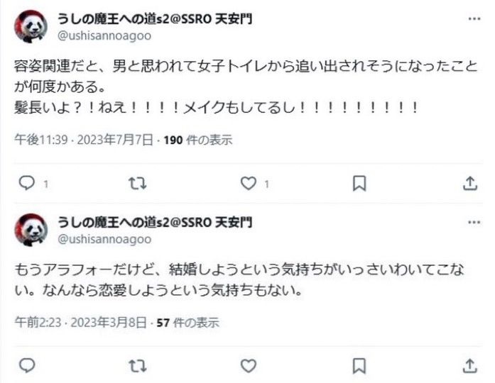 髪長くて便所で男に間違われるって相当不憫な容姿だろ…