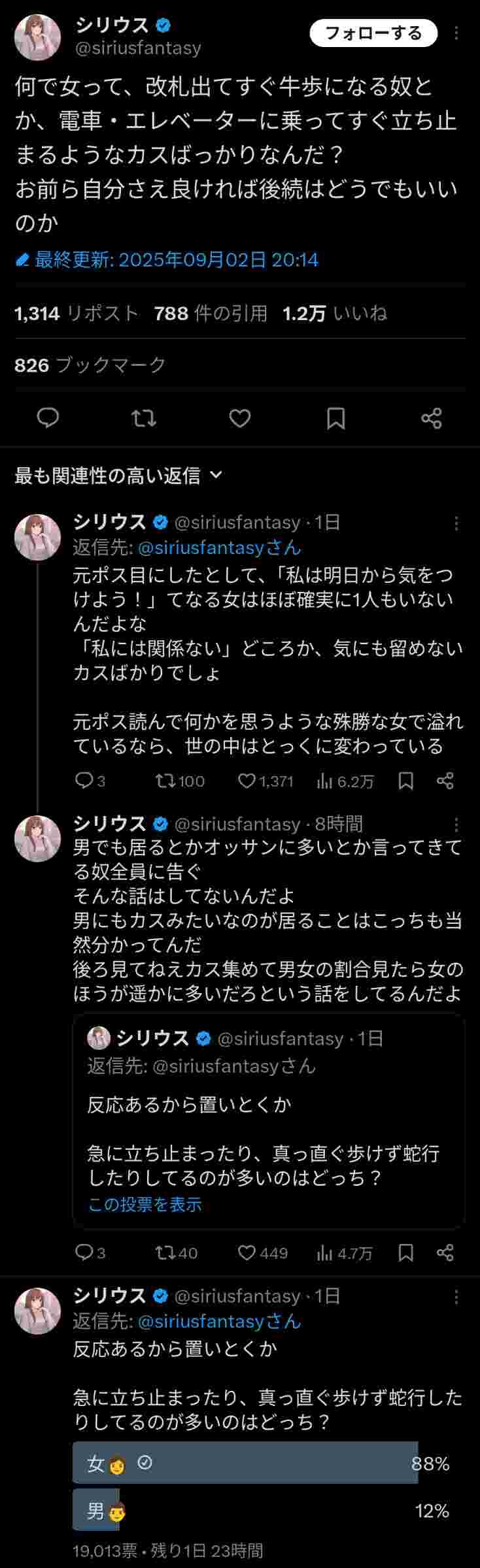 女、改札出てすぐ牛歩になる奴とか、電車・エレベーターに乗ってすぐ立ち止まるようなカスばかりだった…