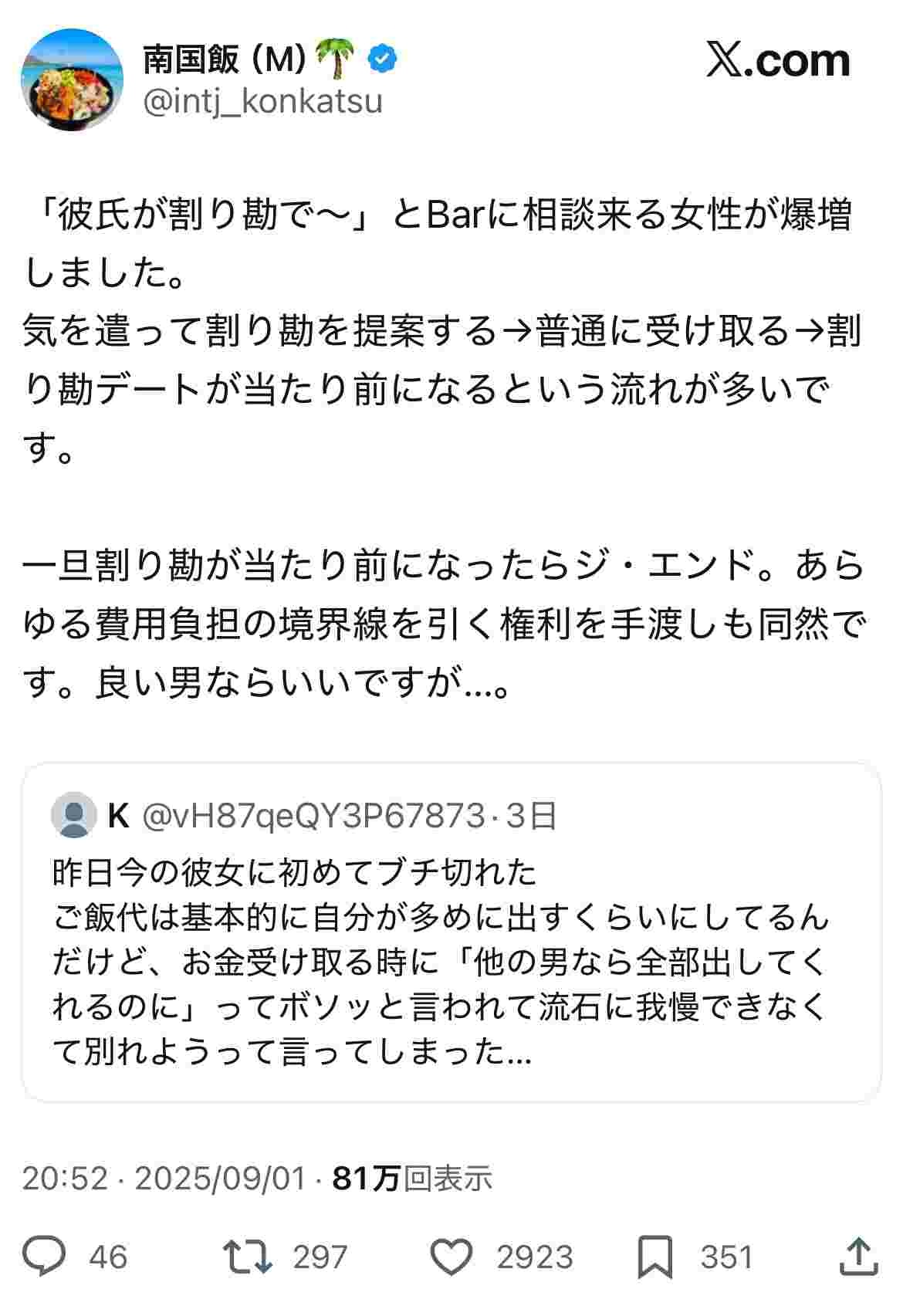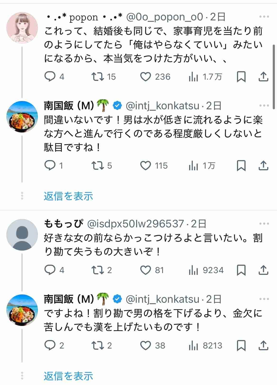 女性は時々手料理でも食わせてくれてたら普段奢りでも言う奴おらんやろ