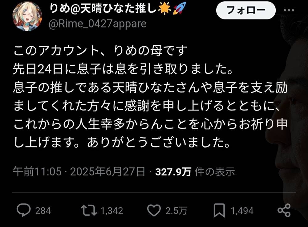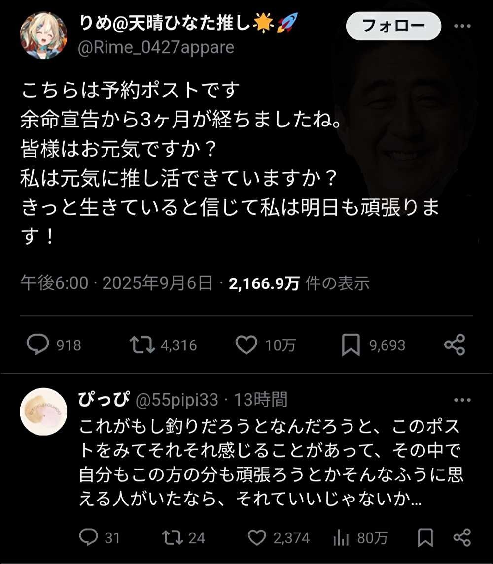 死後これをツイートしてくれみたいにノートに残してたとかなんとかで