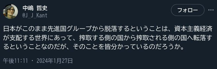 もしかして先進国からまだ脱落してないと思ってるのか?