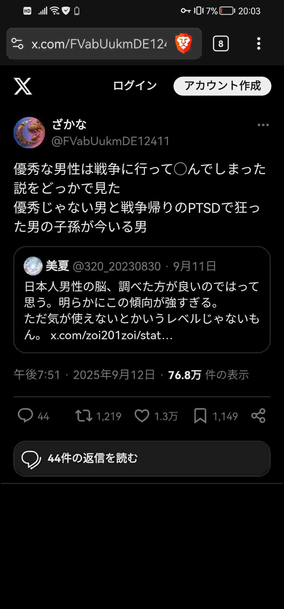 X中の女さん「優秀なオスは皆戦死した」「そうだそうだ!」
