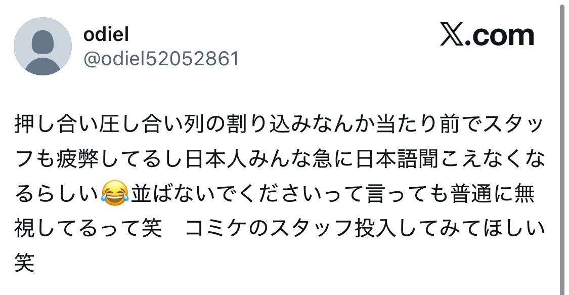 会場の芋洗いのような大混雑じゃパーソナルスペースが侵害されまくりでイライラするのは当然だ
