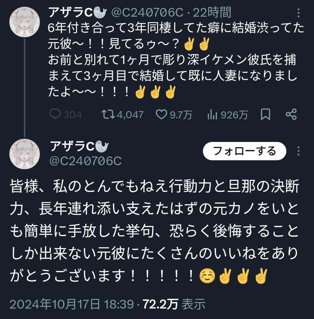 誰も不幸になってない最高のゴールやのになんで脳内で元カレの事不幸にしてsnsで勝利宣言してまうんやろな