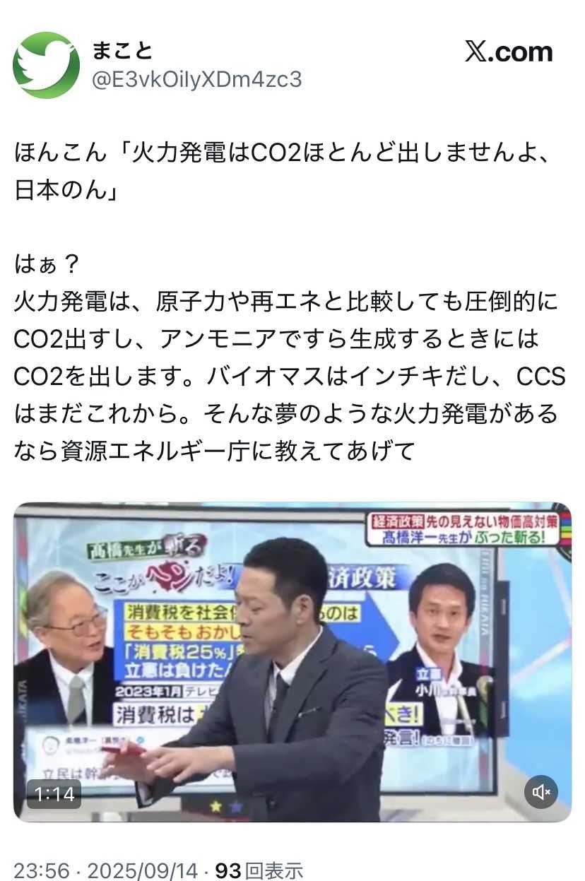 「海外の火力発電に比べたら」ってのが抜けてるのかな