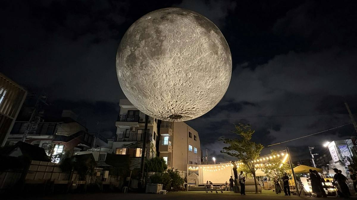 毎年連続で「下北線路街 空き地」に展示されるこの作品は、直径7メートルの大きな月を模しており、クレーターの細部まで表現されている。