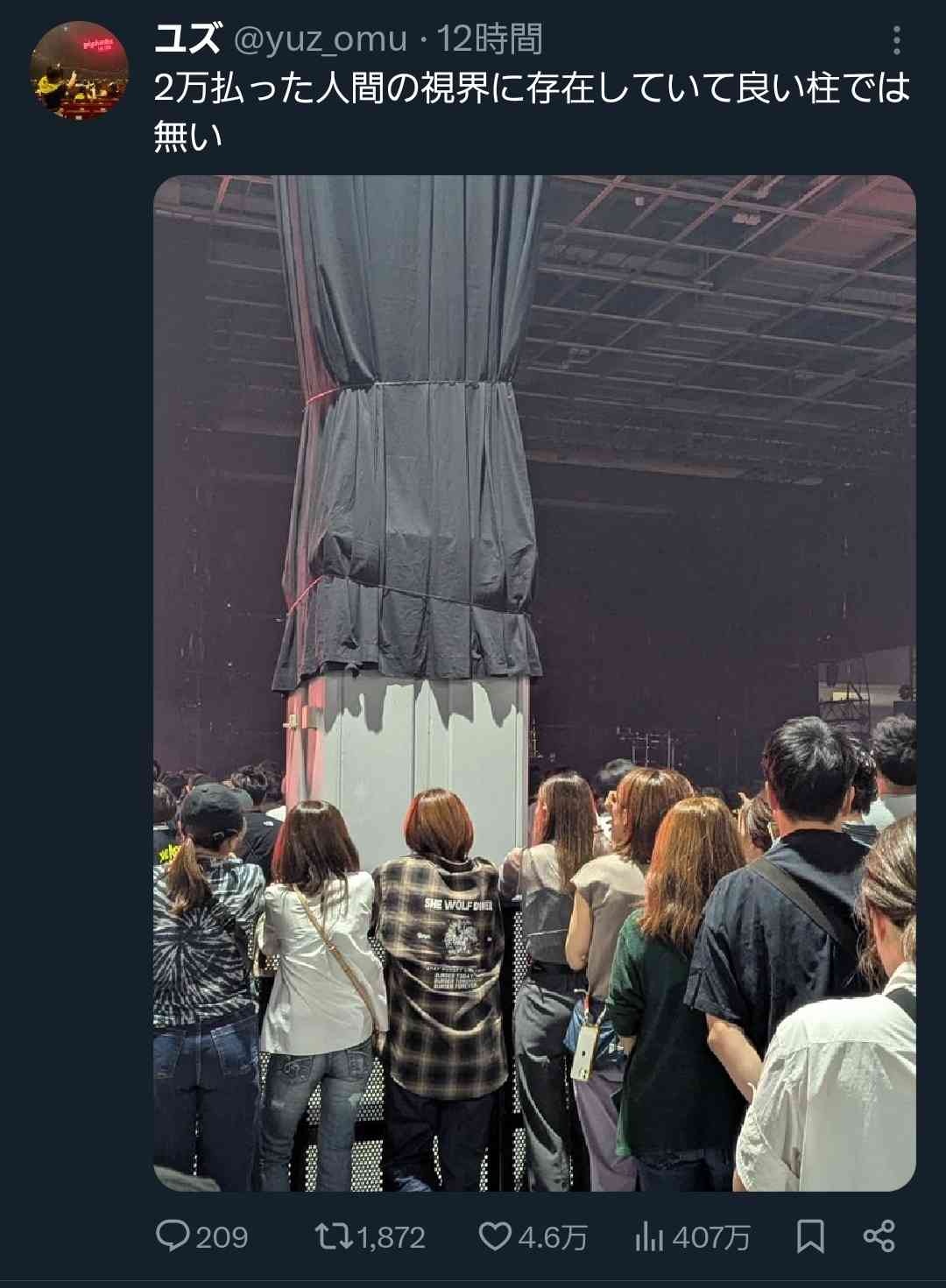 2万円も払って天空席とか笑えるな、まあこれも推しへの尊いお布施ってやつなんだろうから本人は満足してるんじゃないの