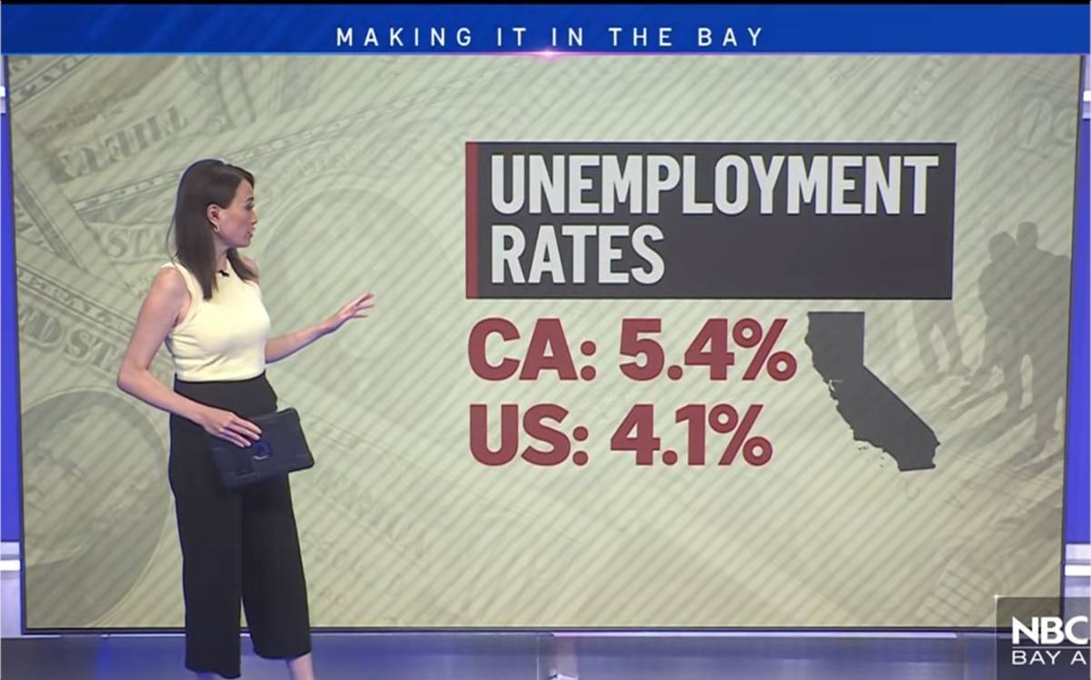 カリフォルニアの失業率が全米1位に。最新のレポートによると、失業率が5.4%に上昇。主にホワイトカラー職の求人が激減。考えられる原因
