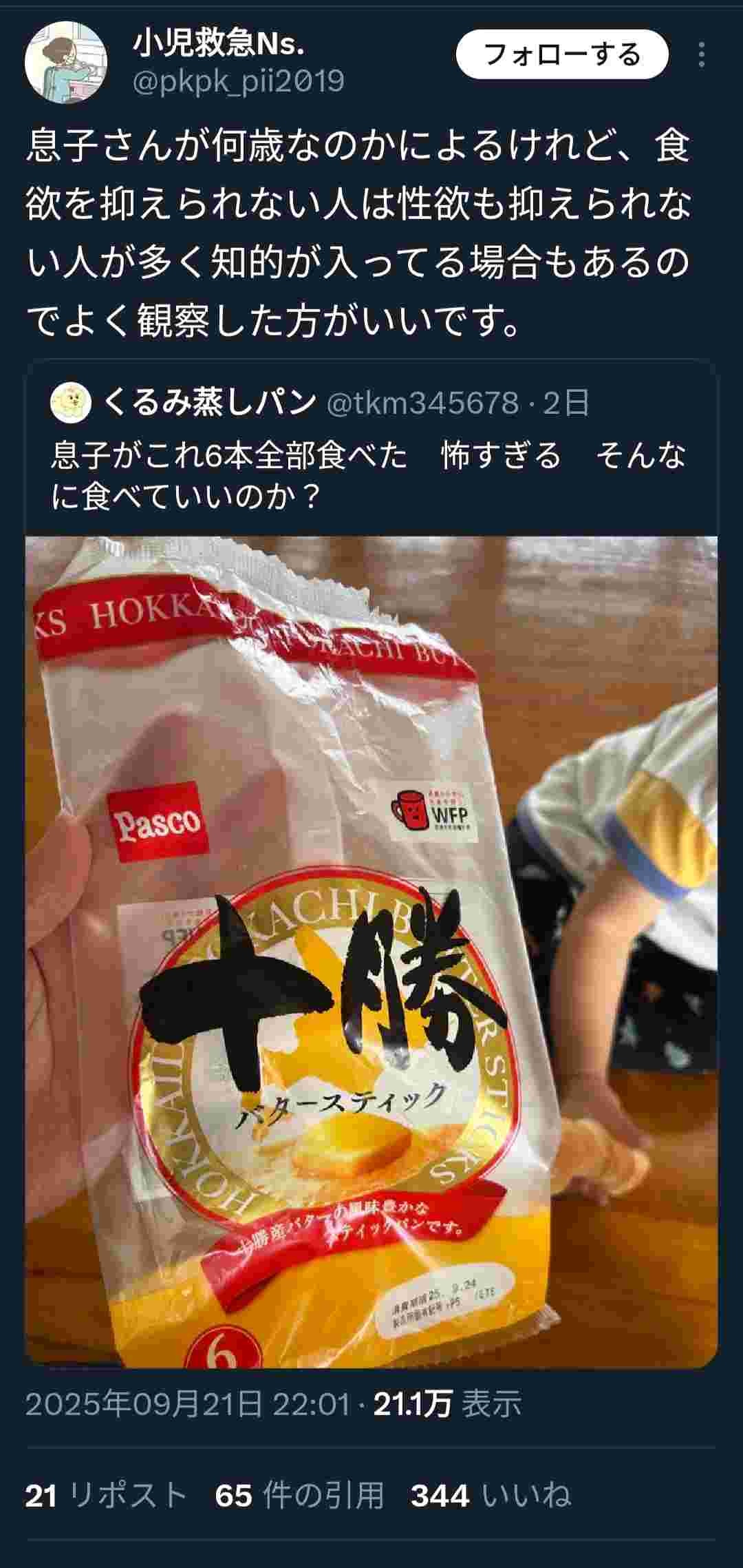 幼児なら食べ過ぎではあるが、それをもって障害とか子供についても知らんし医療についても知らんやろ