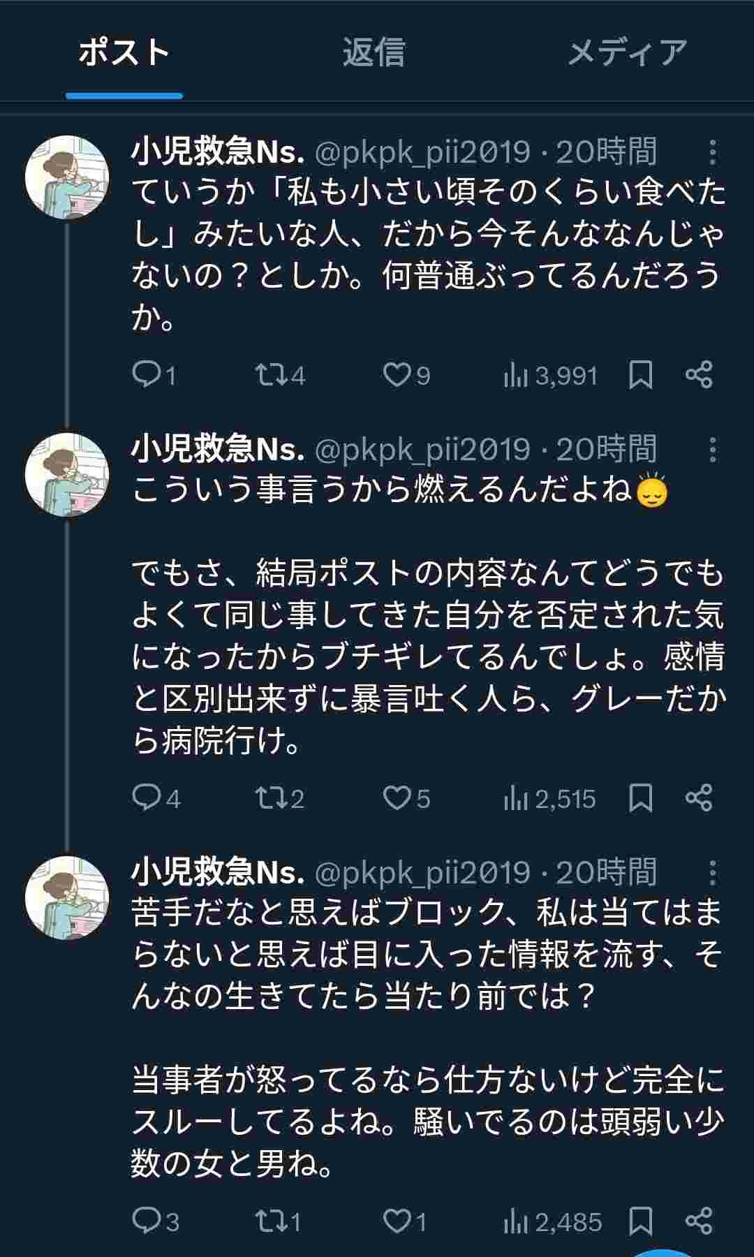「みんなそうなんだなあ」ときちんと言ってナースのアホさを浮き彫りにしてるのに自称ナース側が気づいてないの草