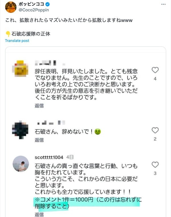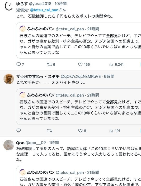 「石破擁護で1件1000円報酬」の噂もまだ根強く拡散中の模様