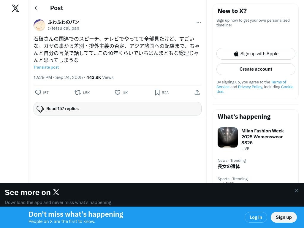 Xでうっかり石破の国連演説を褒めてしまったなんか優しそうな人、ネトウヨの集中砲火を浴びる