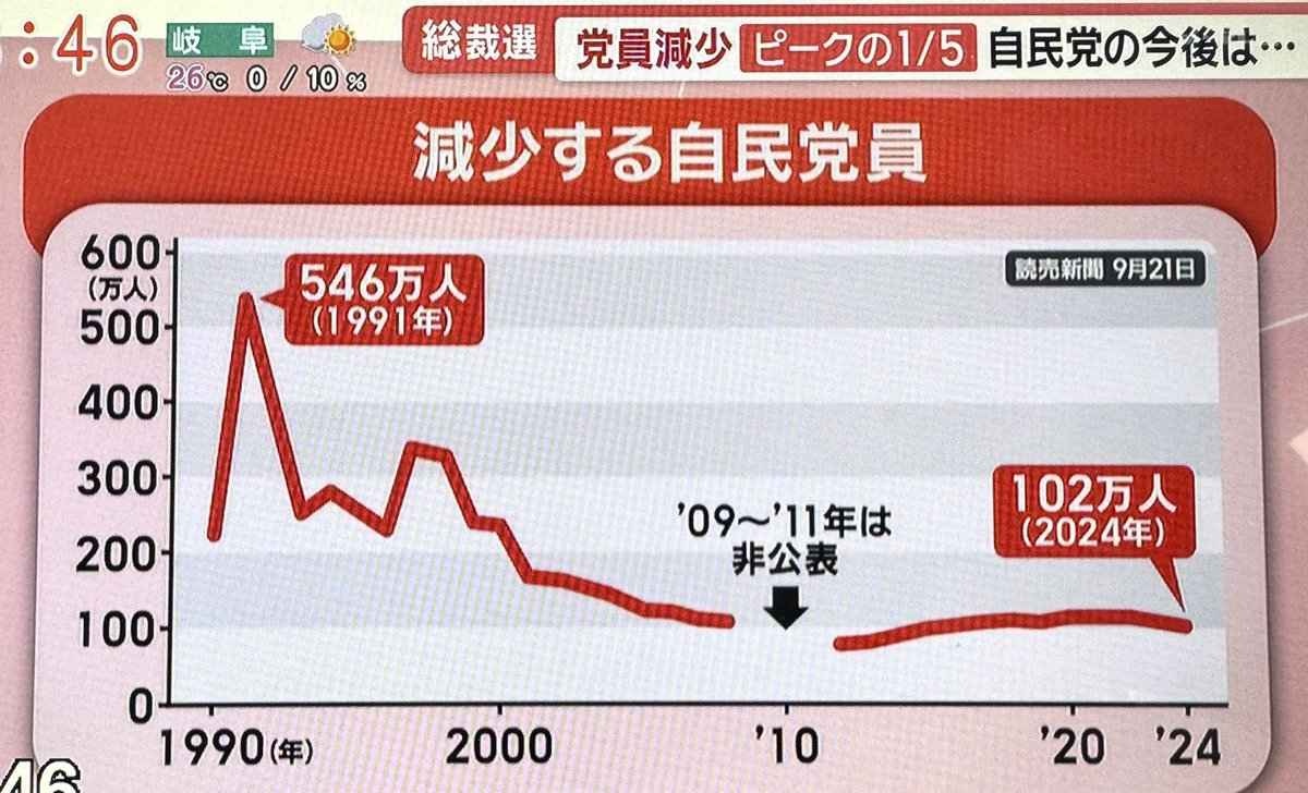 「10年後には自民党の党員が9割ぐらい他界している」っていう記事が出たんだよな