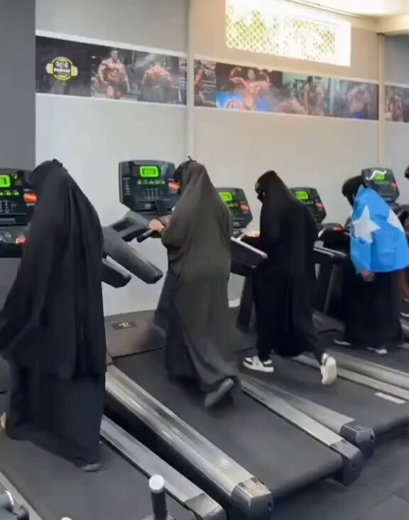 中東女性、厚着しながらジムでトレーニング