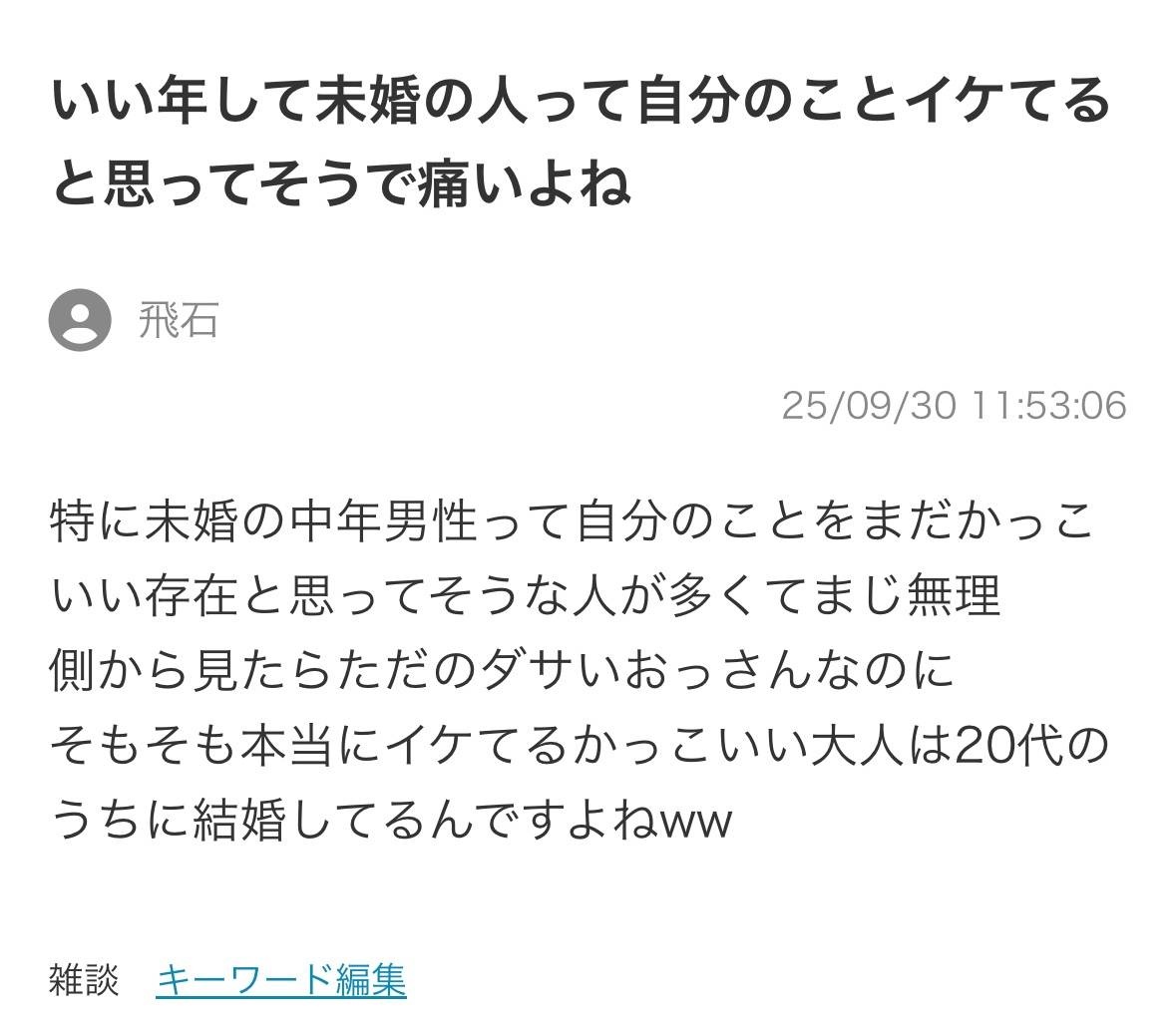 特に未婚の中年男性って自分のことをまだかっこいい存在と思ってそうな人が多くてまじ無理