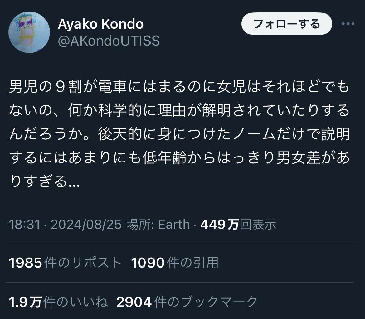 あれ別に電車が好きなんじゃなくてプラレールが好きな可能性無いか?