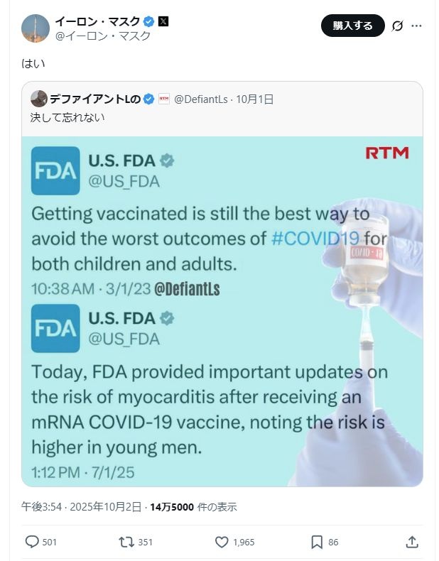100%安心安全だから打て打て打たないやつは非国民と煽ってた医クラどもは金輪際SNS禁止で