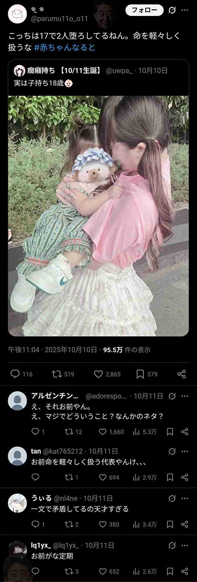 ぬいぐるみを赤ちゃんと言い張ってんのかとおもったわ