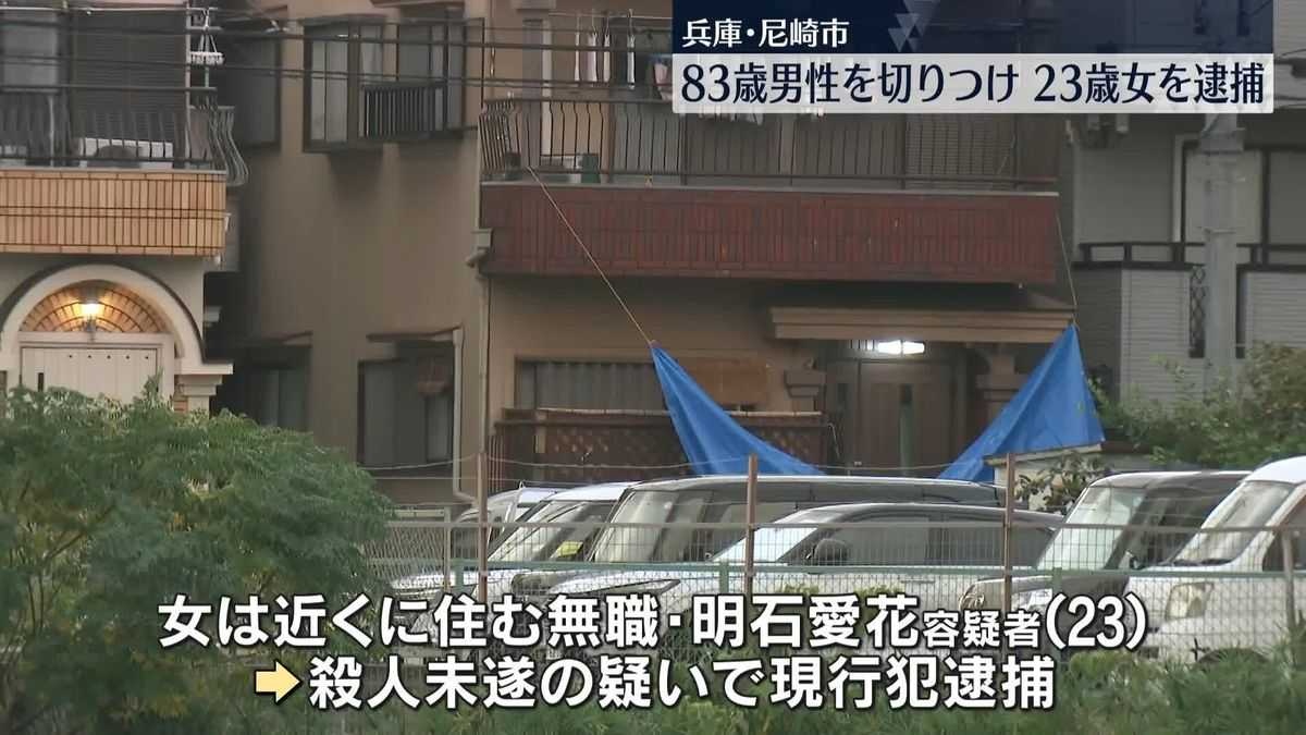 12日午後、兵庫県尼崎市の住宅で83歳の男性の首を刃物で切りつけ、殺害しようとしたとして、23歳の女が現行犯逮捕されました。男性はその後、死亡しました。