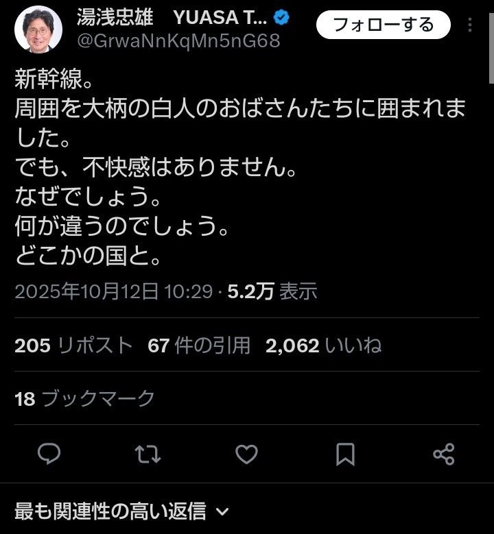 日本人「新幹線で周りに白人のおばさん達がいた、でも"どこかの国の連中"と違って不快感はなかった」