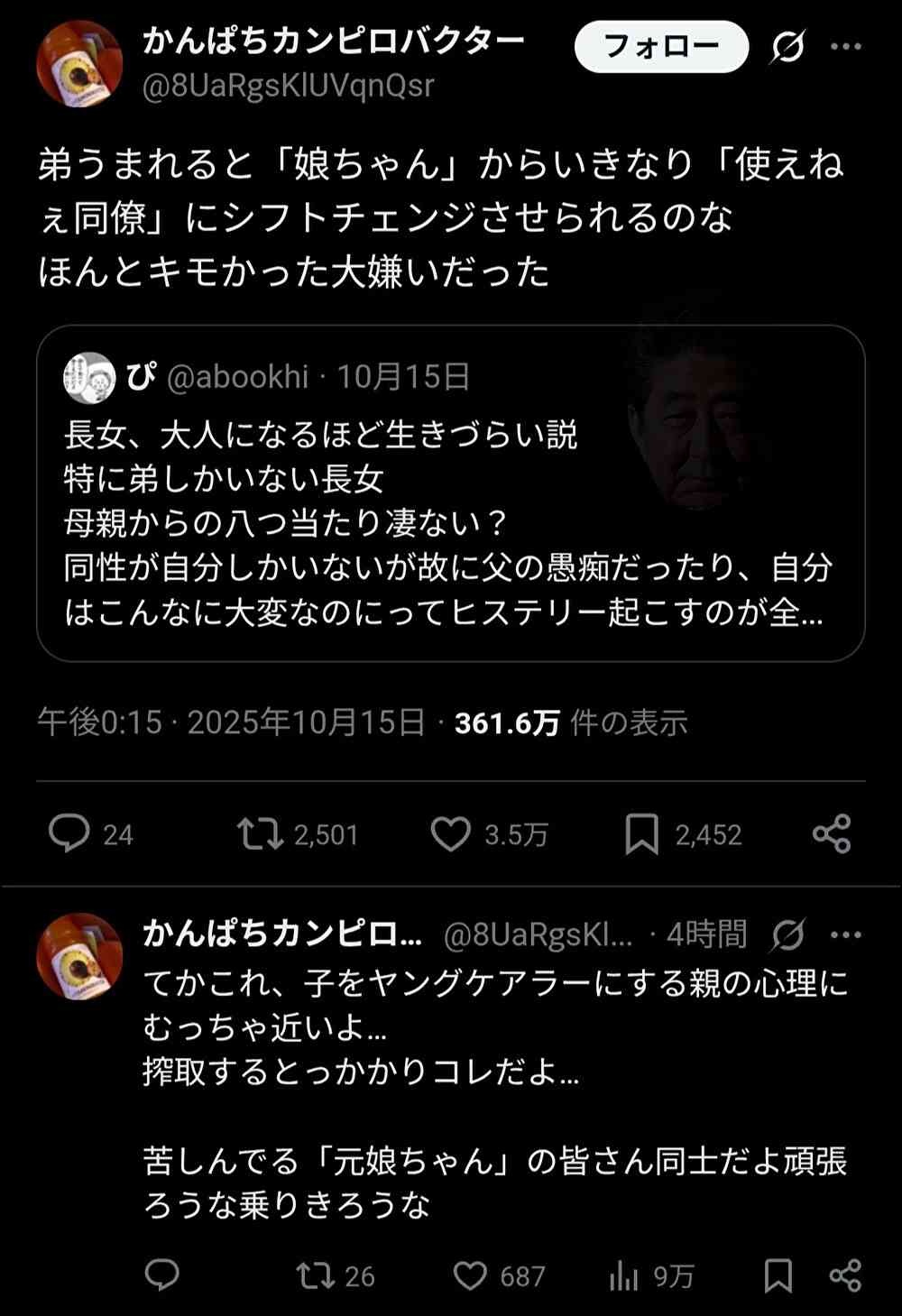 これ長女視点じゃなくて母親視点じゃないと発想できないだろ