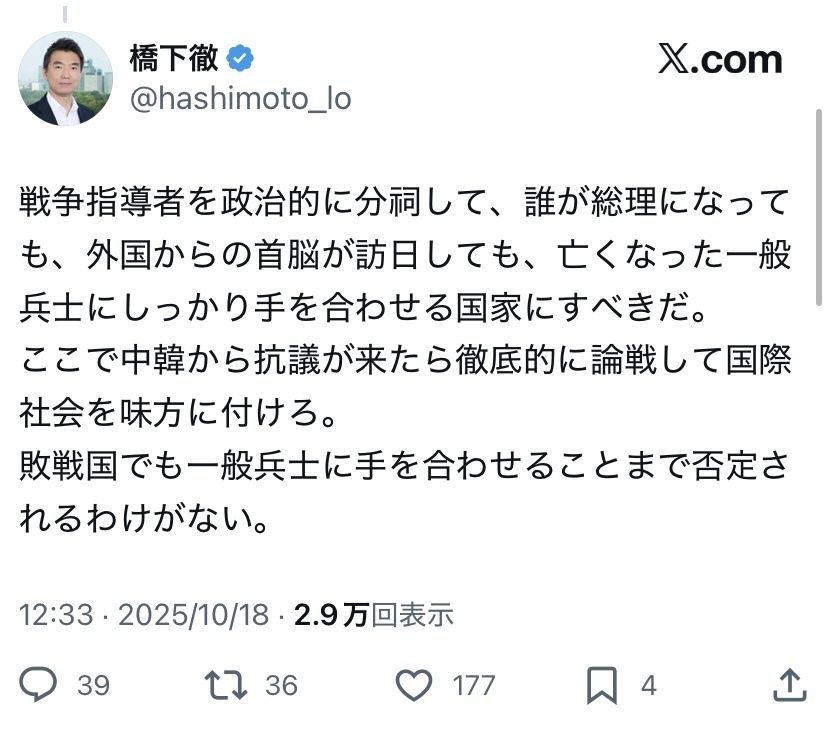 ネトウヨ「石破はなぜ靖国参拝しない?石破は媚中だ!総理大臣を高市さんにしろ!」